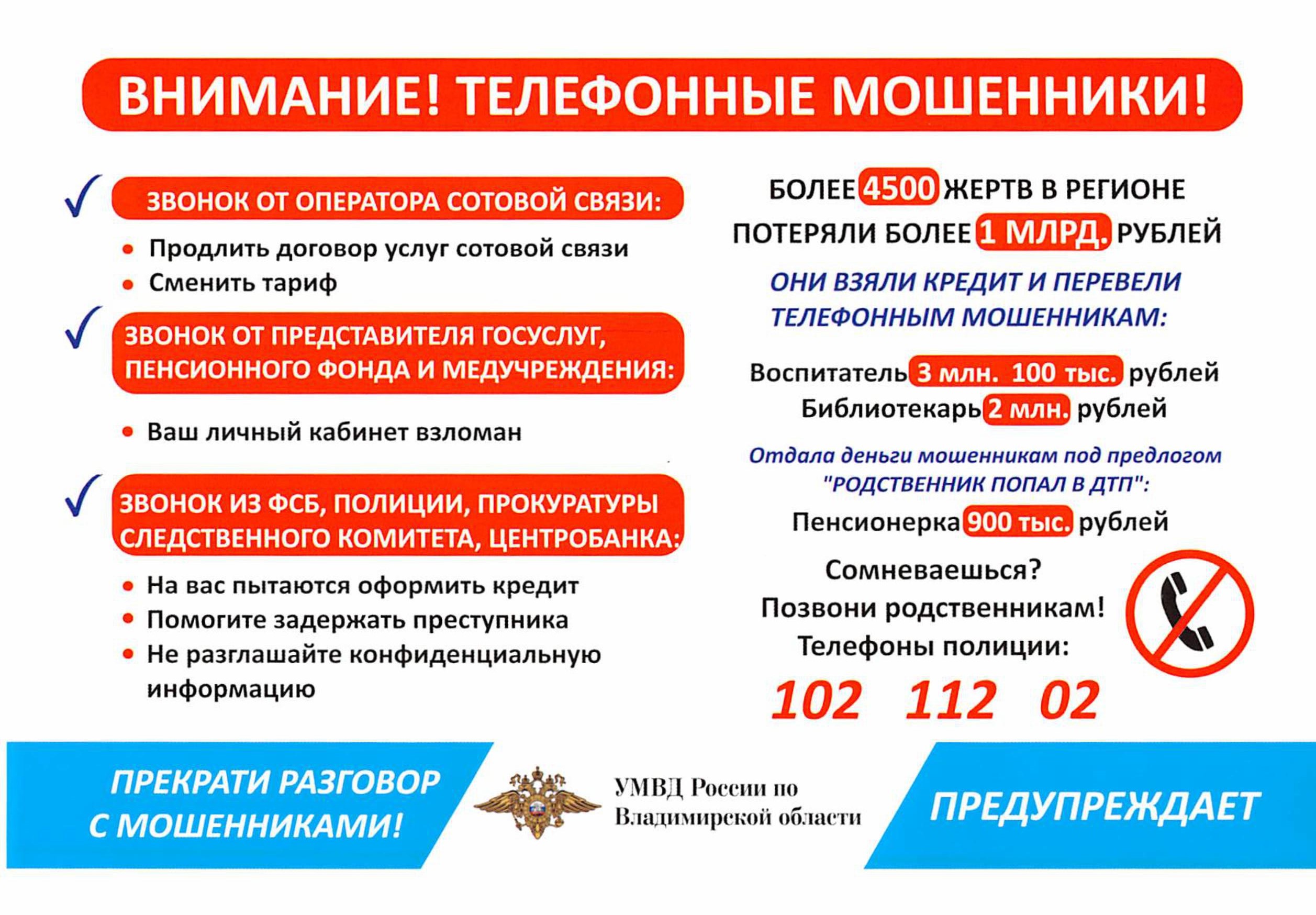 Некоторые рекомендации из памятки о телефонном мошенничестве: